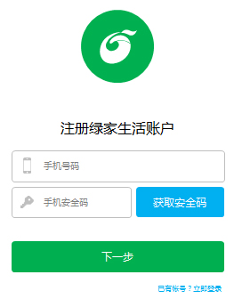 进入绿家生活官网主页后,点击右上角“注册”链接,根据页面内容提示,即可注册绿家生活帐号。